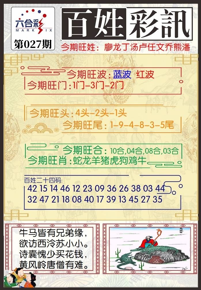 027期 男:鼠狗猴马 女:兔猪鸡羊 中:?00